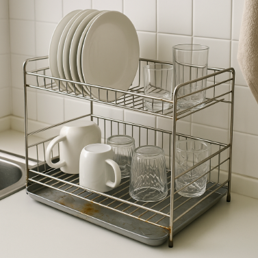 많은 식기건조대는 겉보기에는 스테인리스처럼 반짝이는 금속 재질로 되어 있지만, 실제로는 철제 프레임에 크롬 도금이나 분체 코팅이 입혀진 제품이 많습니다. 문제는 이 코팅이 스크래치나 장기간의 수분 노출로 인해 손상되었을 때입니다. 코팅이 벗겨진 부위가 물과 공기, 주방의 열기와 닿으면 바로 ‘녹’이 발생합니다. 녹은 단순한 외관 문제에 그치지 않습니다. 물받이 트레이에 고인 물을 통해 녹이 번지면, 그 물에 식기의 일부가 닿을 수 있고, 식기 표면으로 녹물 성분이 간접 오염될 가능성도 있습니다. 특히 금속 이온이나 산화철이 포함된 녹물은 어린이나 면역력이 약한 사람에게 장기적으로 영향을 줄 수 있습니다.